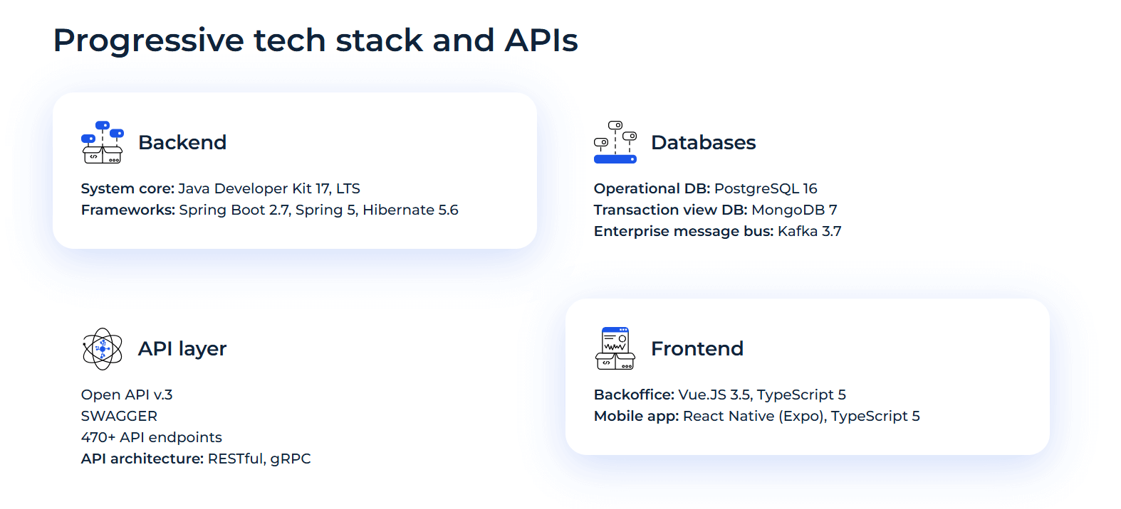 - Ability to maintain robust core systems and core banking systems, delivering essential core banking functionalities such as account management, payments, and compliance through APIs